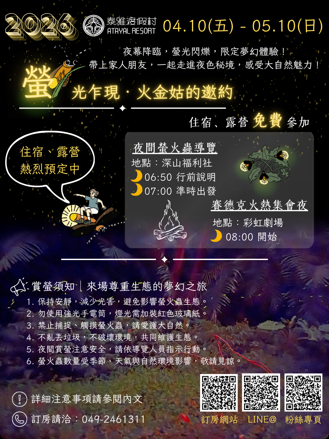 泰雅渡假村 邀請你來夜訪「螢」河,讓我們在黑暗中前行,在星空下漫步森林、賞螢