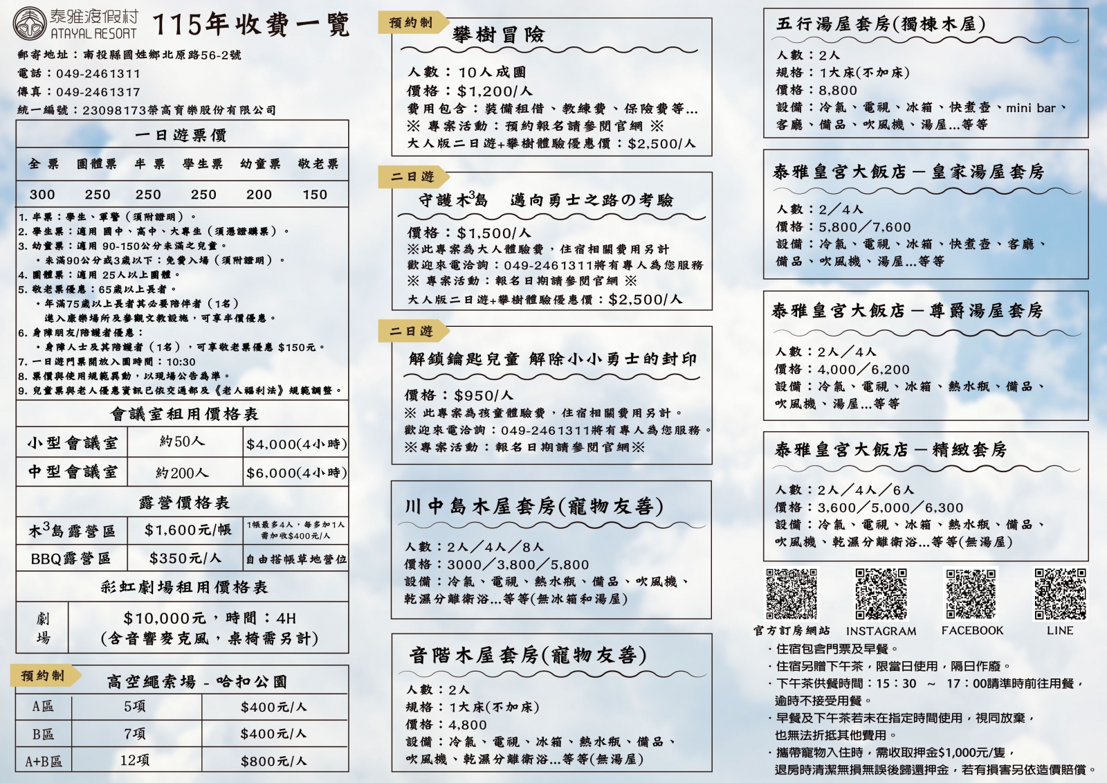115年【收費一覽表】