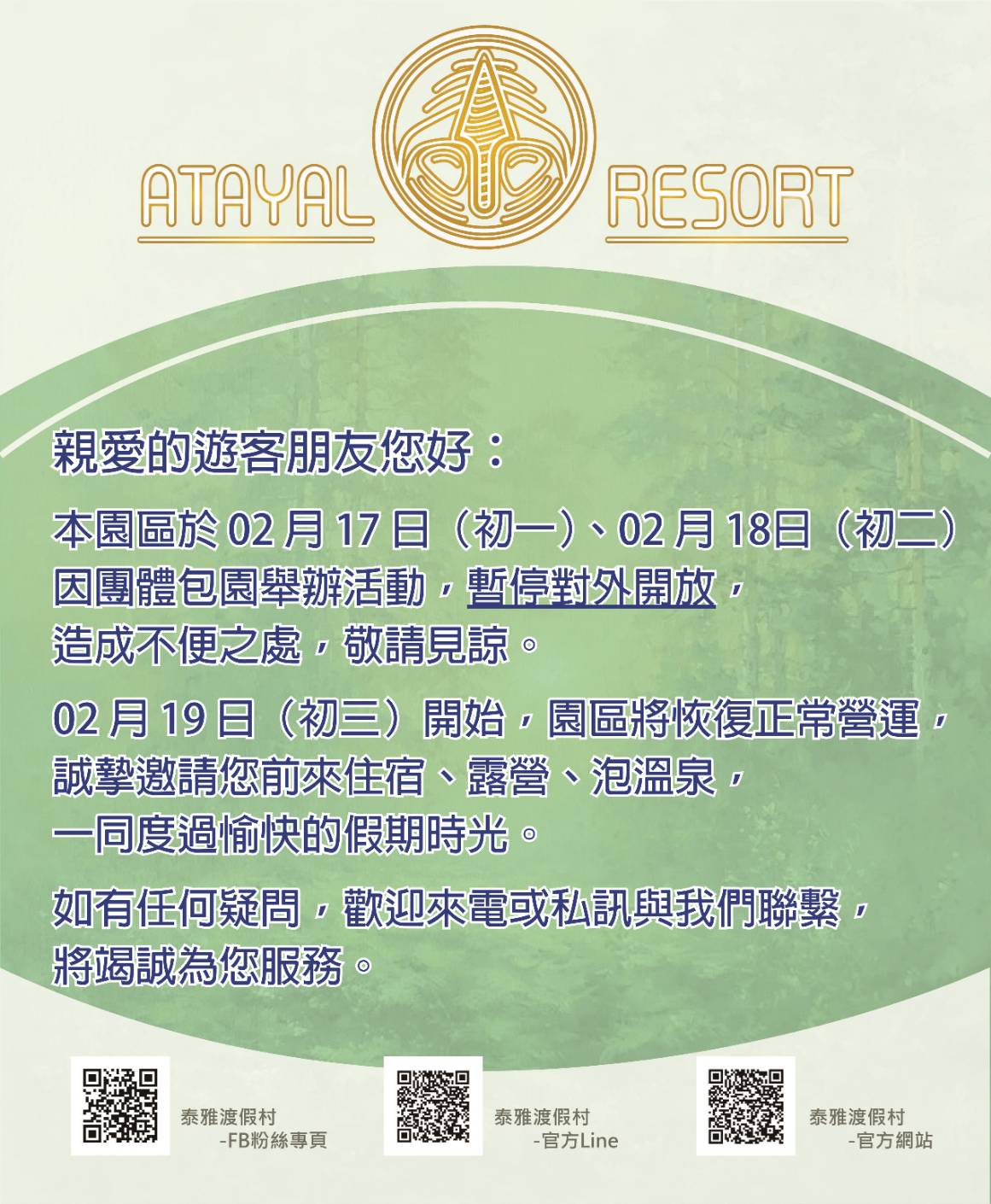 因團體包園舉辦活動,園區暫停對外開放,造成不便敬請見諒。
